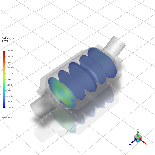 # This scene focuses on pressure distribution across the catalytic converter