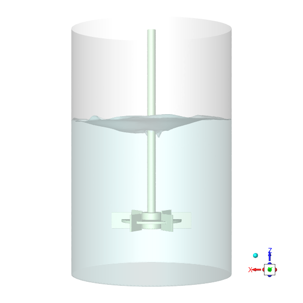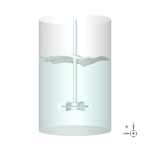 In this tutorial, we aim to model vortex formation in a stirred tank using a steady-state simulation. The setup involves an unbaffled cylindrical tank equipped with a Rushton turbine impeller, featuring the following specifications: