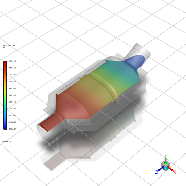 # This scene focuses on pressure distribution across the catalytic converter