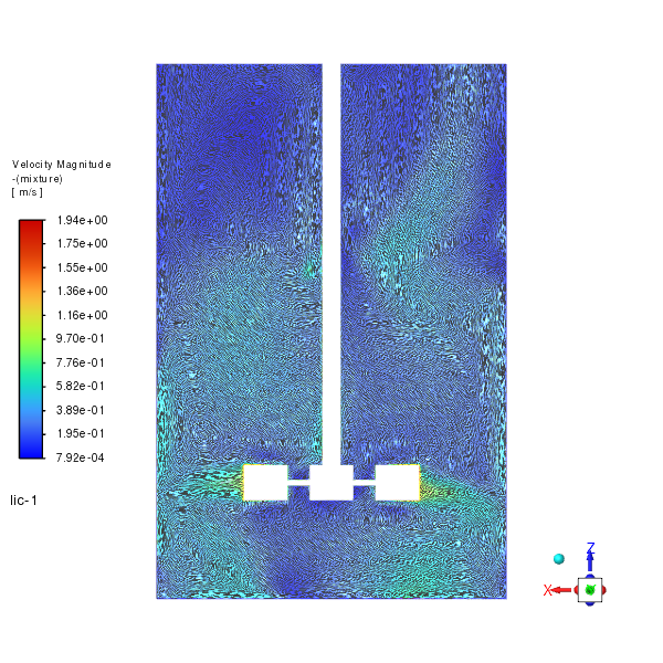 - *The velocity vectors illustrate the flow patterns within the tank, highlighting the