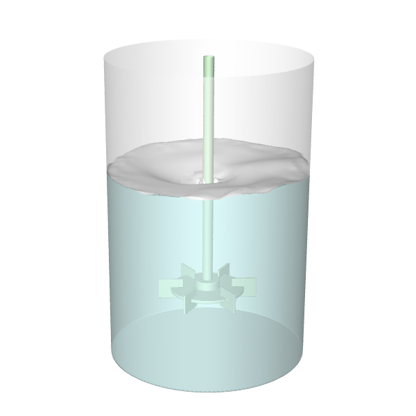 In this tutorial, we aim to model vortex formation in a stirred tank using a steady-state simulation. The setup involves an unbaffled cylindrical tank equipped with a Rushton turbine impeller, featuring the following specifications: